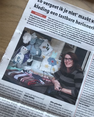 GEESTEREN - Voor veel nabestaanden is het een ingrijpende gebeurtenis; het opruimen en in de meeste gevallen weggooien van kleding van overleden dierbaren. Maar definitief afscheid nemen van bijvoorbeeld opa’s favoriete overhemd of mama’s lievelingsvest is volgens Jenny Hilberink niet nodig. Onder de naam ‘Zo vergeet ik je niet’ maakt zij van deze kleding en van waardevolle accessoires een tastbare herinnering. De mogelijkheden zijn eindeloos; van kussenhoezen tot wandkleden en kinderknuffels. Zo vergeet ik je niet zoekt samen met de nabestaanden de mooiste items uit om deze te verwerken in een blijvend aandenken naar wens.