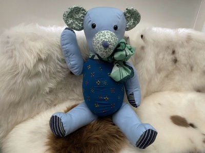 In een herinneringsknuffel of troostknuffel verwerk ik stoffen van allerlei kledingstukken: van spijkerbroeken en truien tot overhemden, sjaals en T-shirts. Zo ontstaat een uniek aandenken, gemaakt van wat ooit dagelijks gedragen werd. Voor extra stevigheid wordt aan de binnenzijde een stevige stof gebruikt, bij voorkeur ook van de geleverde kleding.